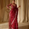 Stitched Blouse: Georgette with heavy embroidery & multi-sequin work (front & back), sleeves fully embroidered with handwork & original mirrors.