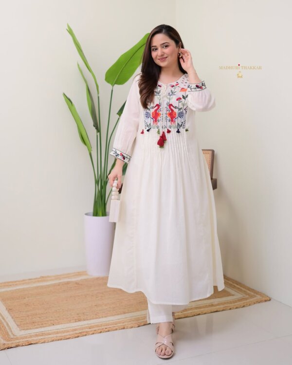 Step into effortless elegance with our Heavy Cotton Suit Set, designed in pure fine cotton 60/60 fabric. The kurta comes with intricate embroidery work, paired with matching pants for a graceful ethnic look.