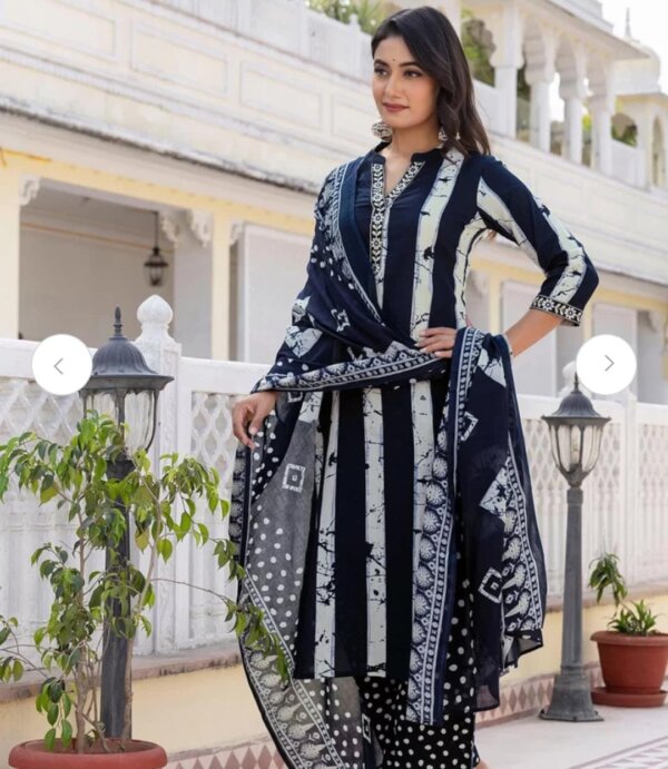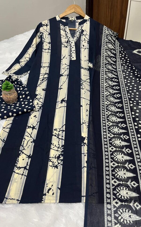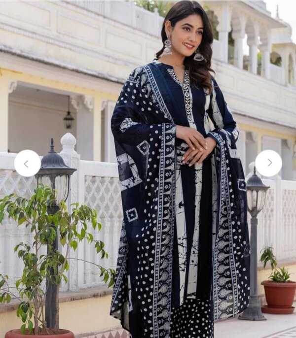 We are here to spread some magic in your wardrobe with this pure fine heavy cotton suit set, designed for elegance and comfort. Crafted with full embroidery work, this ethnic outfit includes a kurti, pant, and cotton 100×100 dupatta – making it perfect for festive occasions, weddings, and everyday ethnic fashion.