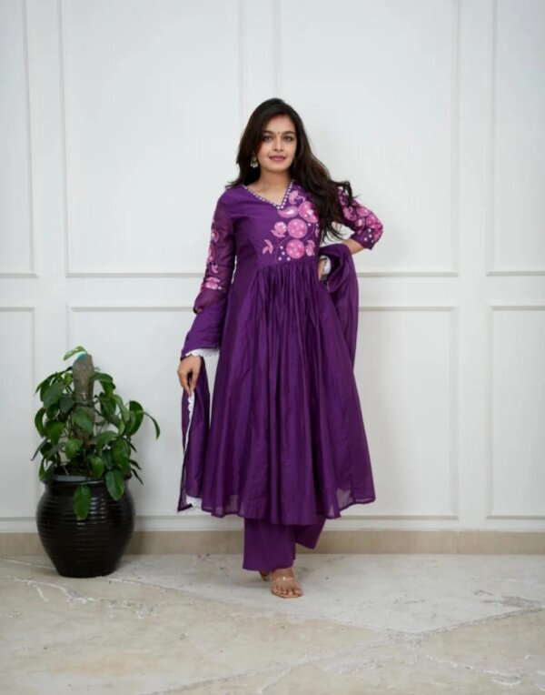 Celebrate this festive season with our exclusive suit set, crafted in pure cotton for ultimate comfort and elegance. The kurta is beautifully adorned with hand embroidery on the front and sleeves, paired with matching cotton pants and a soft mulmul dupatta.
