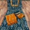 This set includes a matching 100×100 cotton dupatta that completes your ethnic look with grace and charm. Fully stitched and available in multiple sizes, it ensures a perfect fit and effortless style.