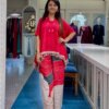 The elegant silhouette is enhanced with delicate border lace work, making it the perfect blend of comfort and festive elegance. Designed in a timeless style, this set is ideal for casual outings, festive gatherings, and summer celebrations.