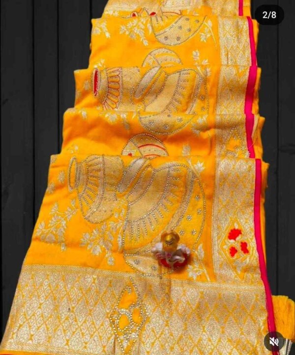 Step into elegance with our original stone work saree in the most trending viral matka design. Crafted with premium fabric and authentic finishing, this saree is designed to make you shine in every festive occasion.